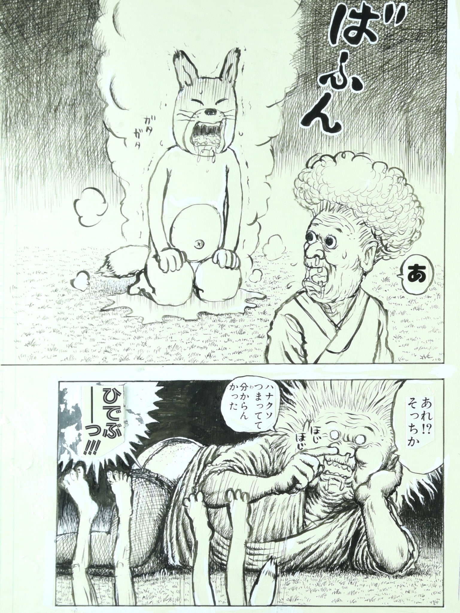 Description: A very rare original published manga page from Manyuuki, one of the very early and one of the best works by the legendary comedy manga author Man☆Gatarou! Incredible final page from the chapter that delivers a very humorous punchline with a fantastic execution!