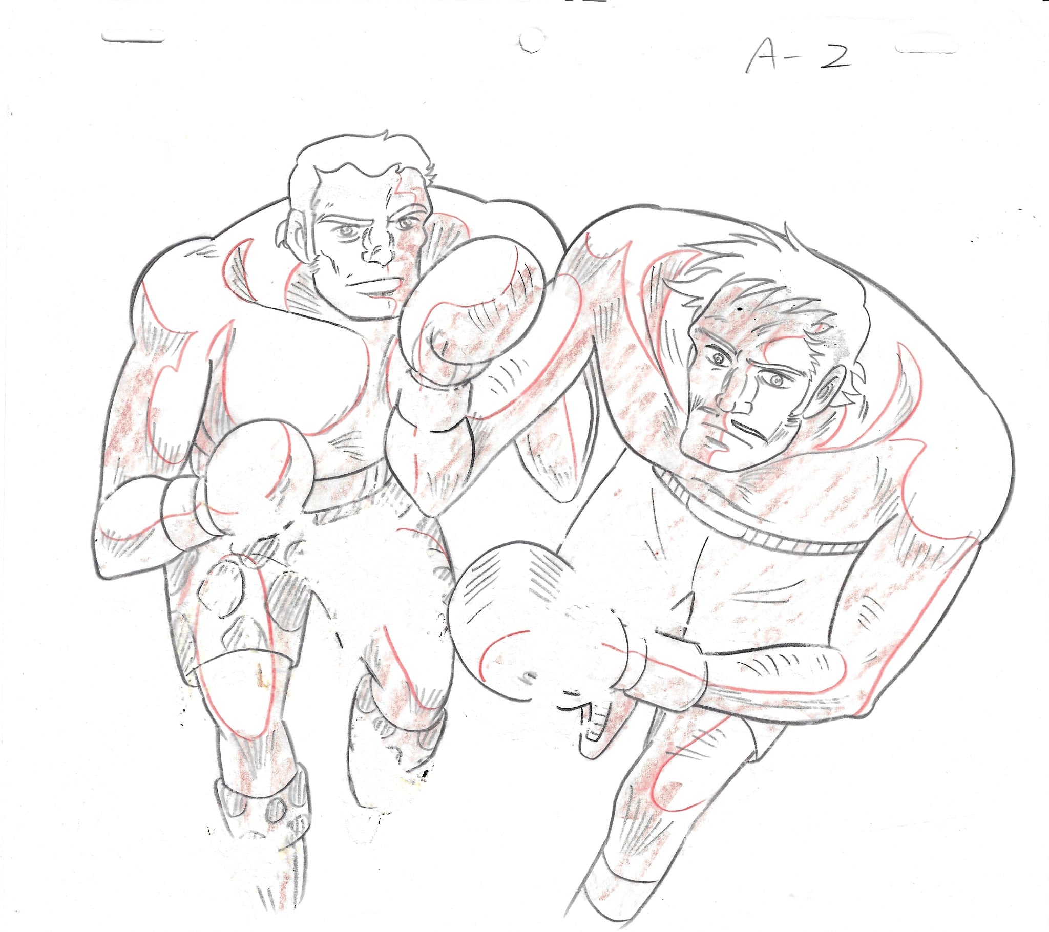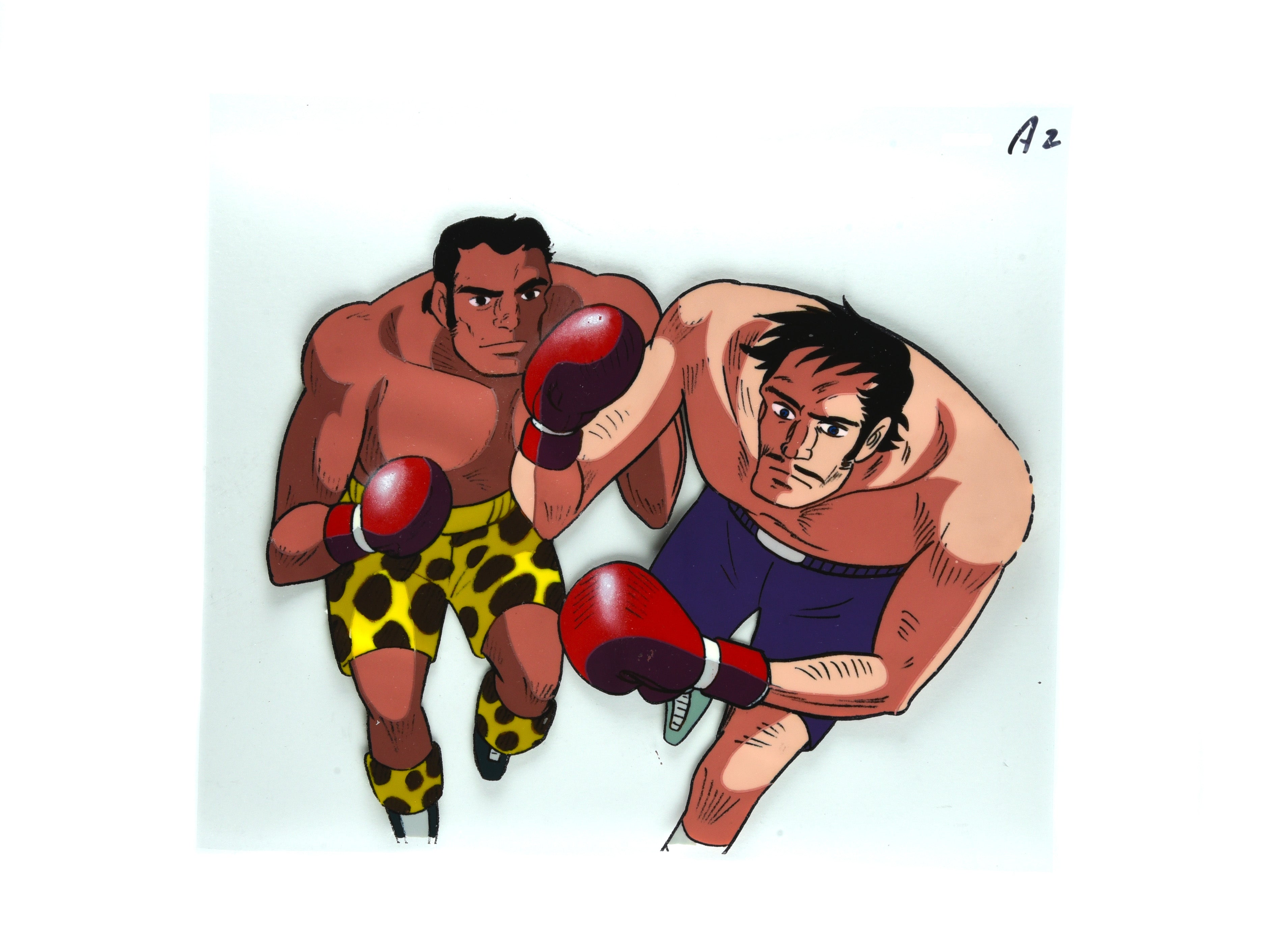 Description: A very nice cel setup of the shocking scene when Kim Yong-bi, a Korean war orphan turned boxer, unknowingly murdered his father who tried to bring back the rations he saved and smuggled back from his deployment.