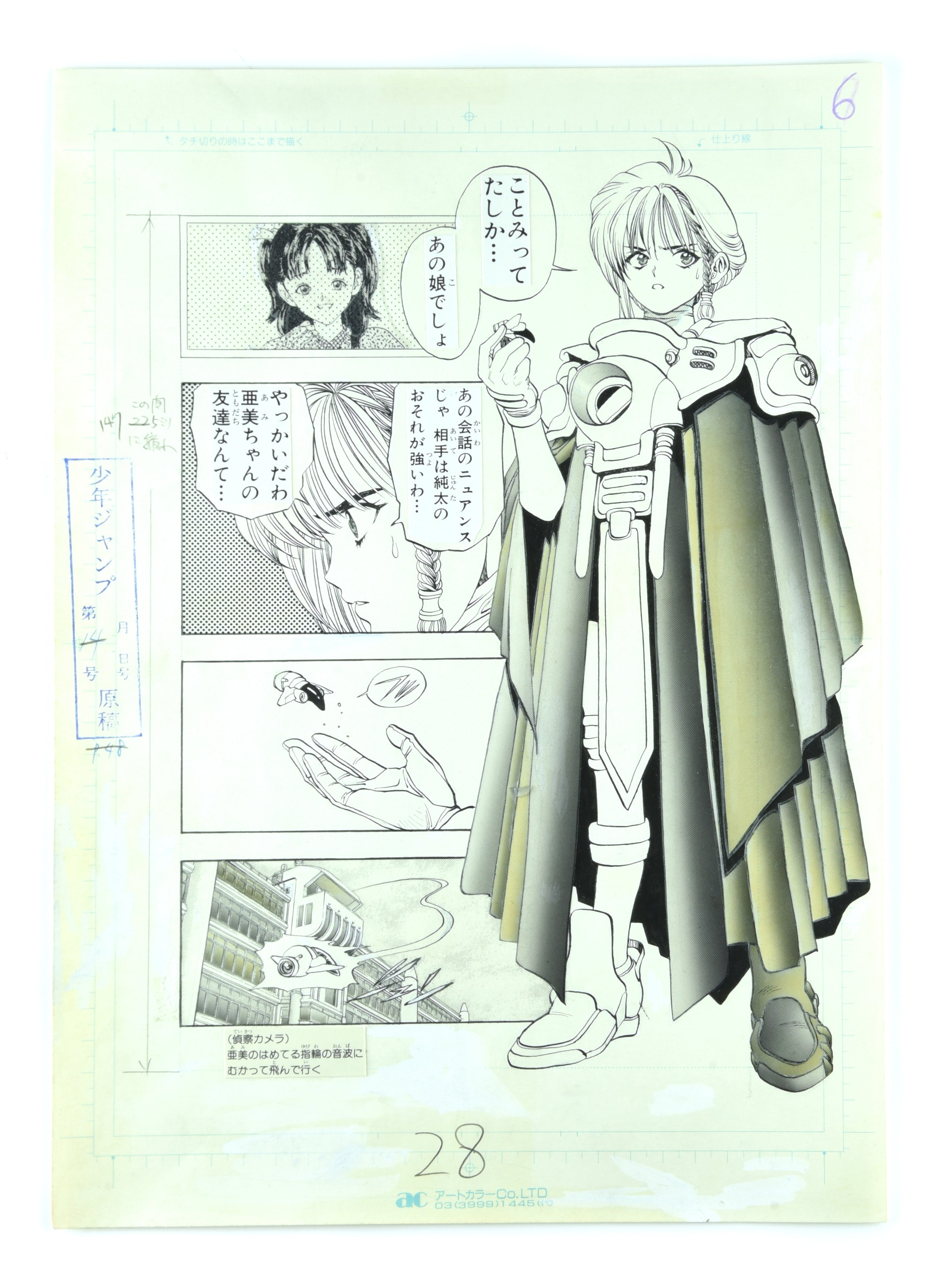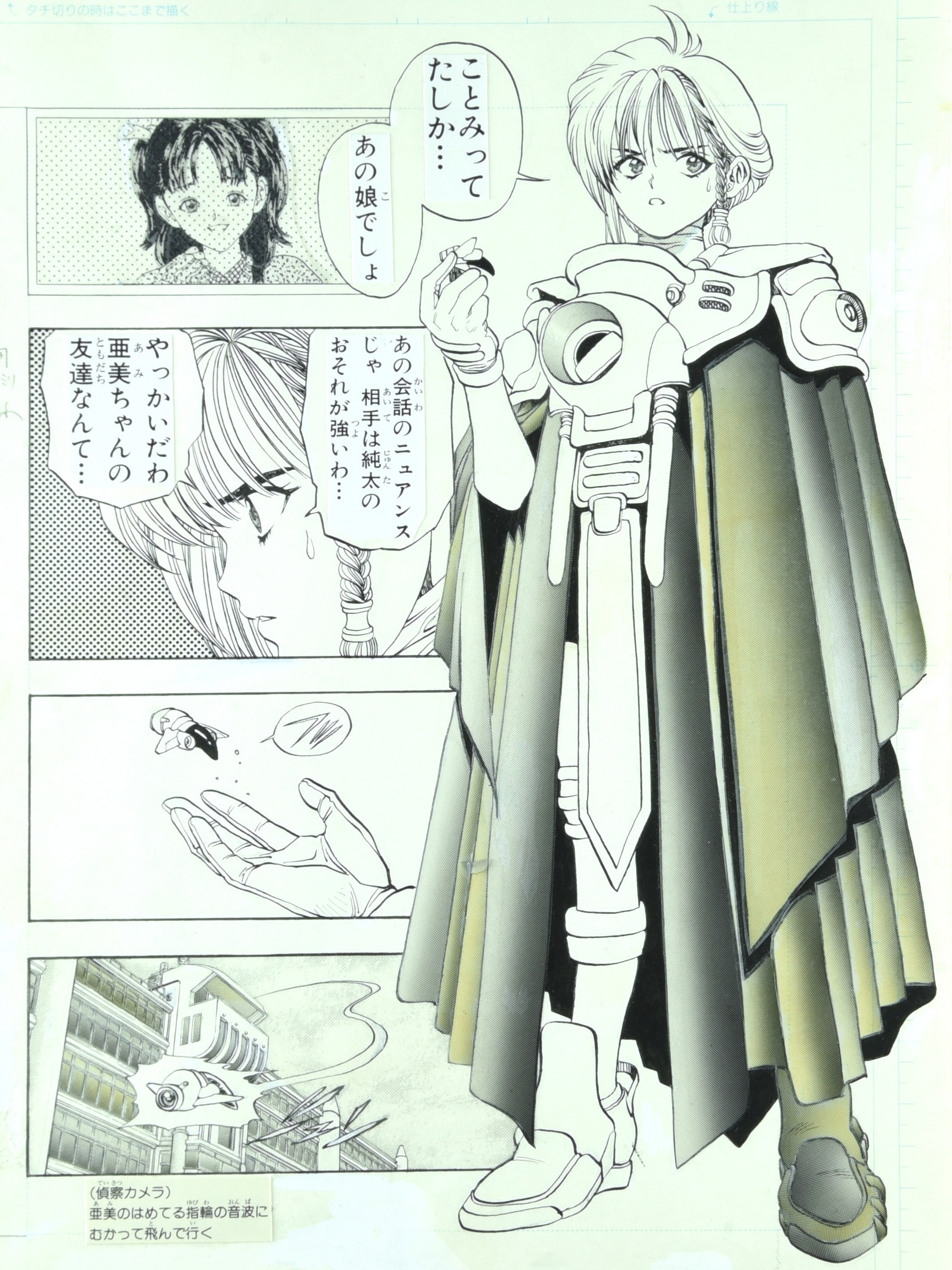 Description: An absolutely incredible original hand-drawn published manga page by the legendary author, featuring a full-length shot of the main character Karin deploying a drone!