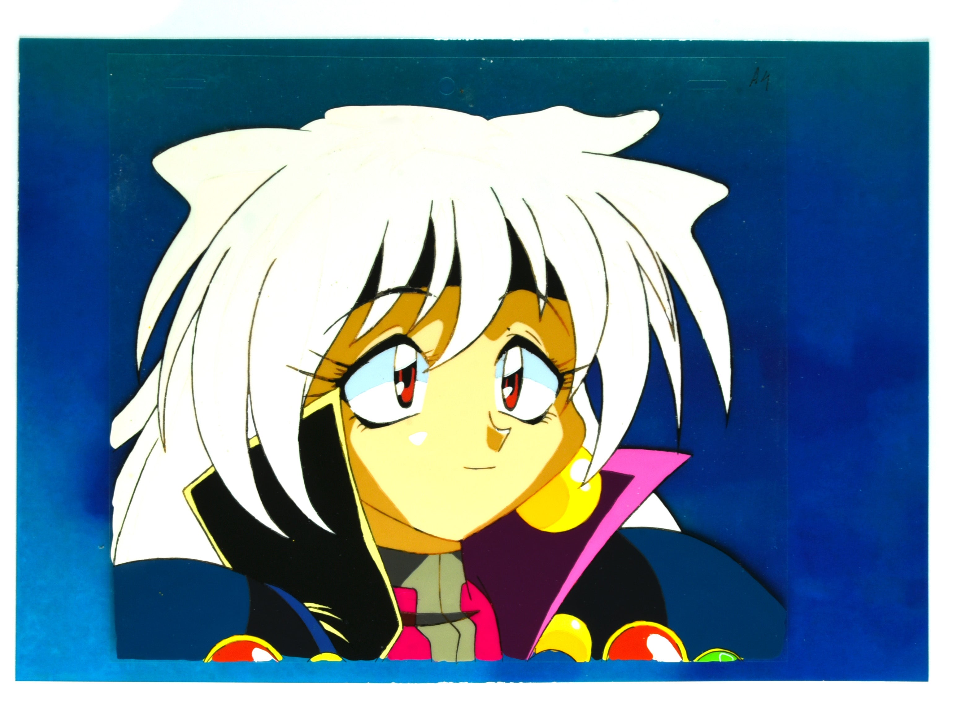 Description: An incredibly rare and sought after cel of Lina Inverse with white hair and a slightly tired smile, after using up all of her magic powers after challenging the Dark Lord Shabranigdo for the first time, and summoning the power of the Lord of Nightmare, and never happened again after this!