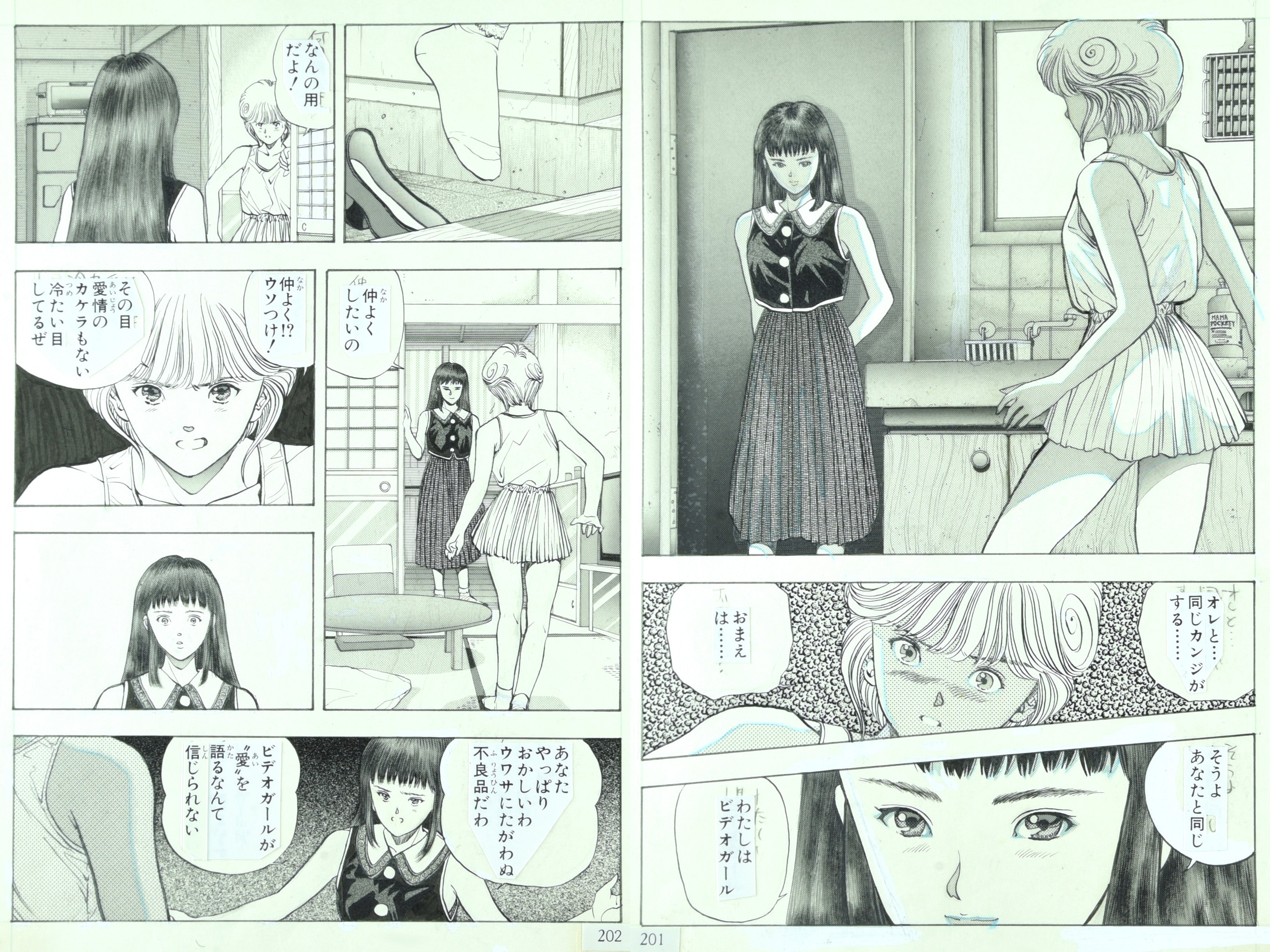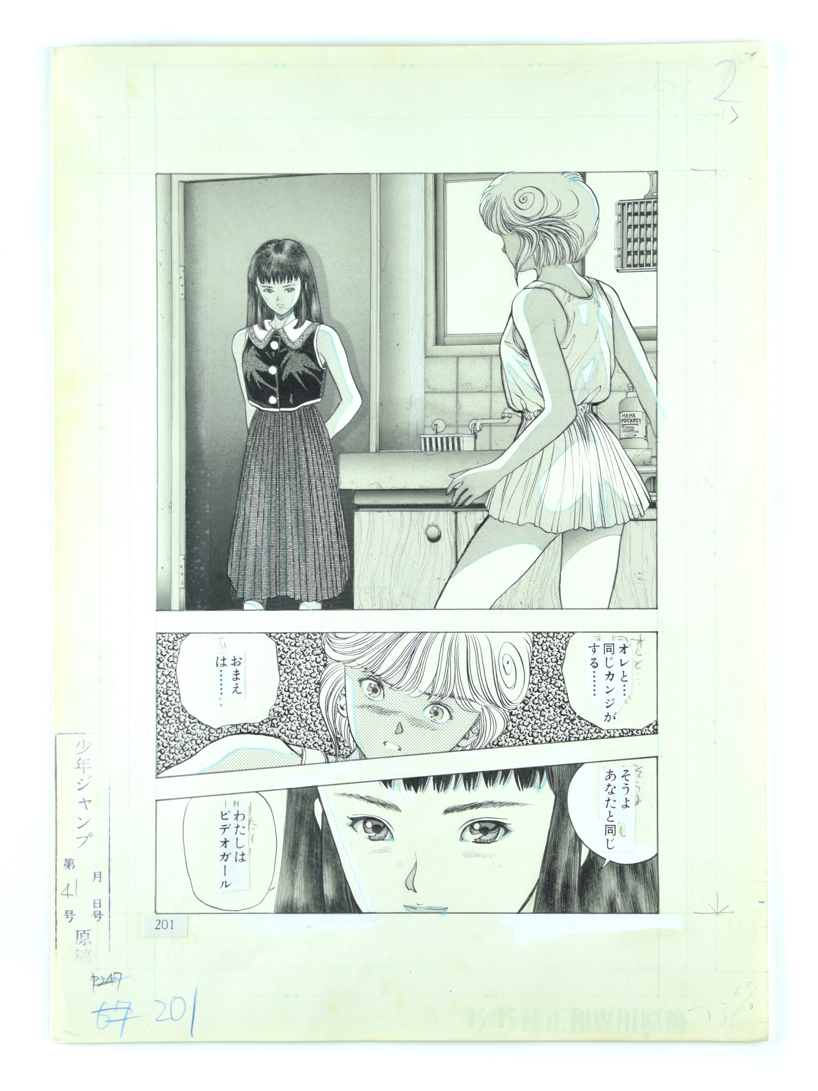 Description: Amazing original hand-drawn published manga pages by the legendary author, featuring an incredibly tense moment when the two Video Girls meet each other for the first time, with a very cool dialogue on the second page!